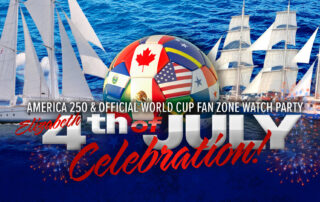 Celebrate America 250 and the World Cup spirit in Elizabeth with fireworks, fan zone fun, tall ships, soccer, food, and live entertainment.